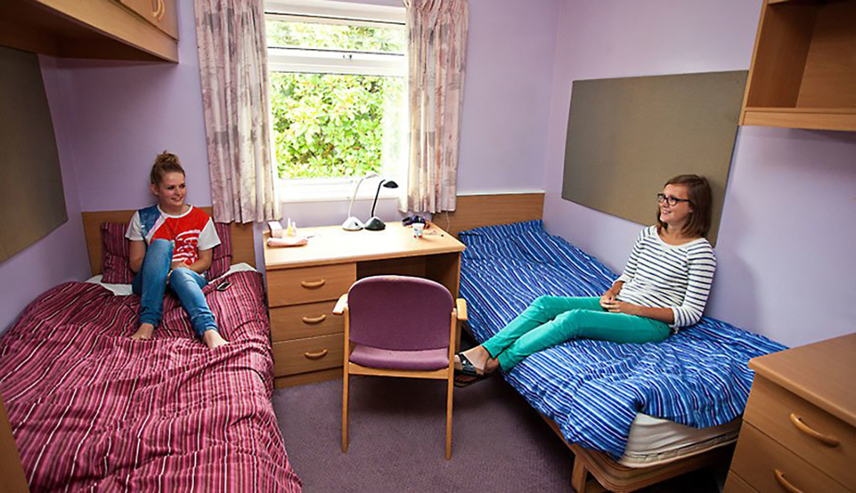 Los alumnos se alojan en habitaciones dobles, triples o cuádruples. Las habitaciones son internacionales y así se favorece la comunicación en inglés. En cada dormitorio hay zonas comunes, de aseo y una pequeña cocina que comparten los asistentes.